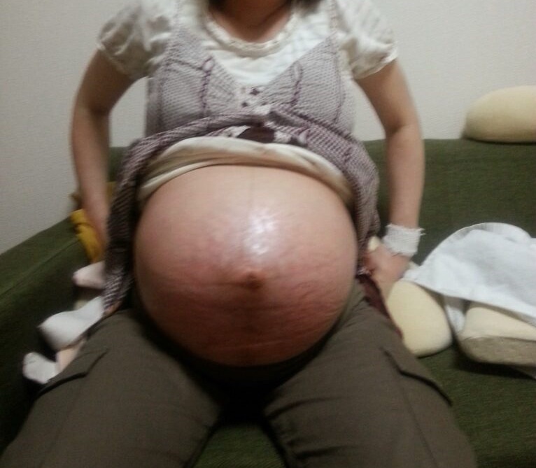 いくら食べても食べれそうでしたねー、おかげで体重は最後には17キロ増!身体は本当に重かった。お腹の大きさは、下の写真で8ヶ月