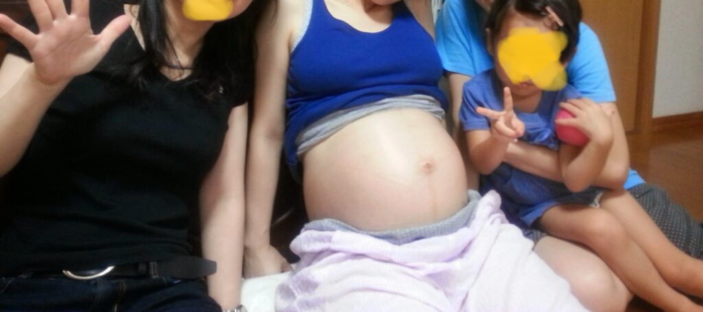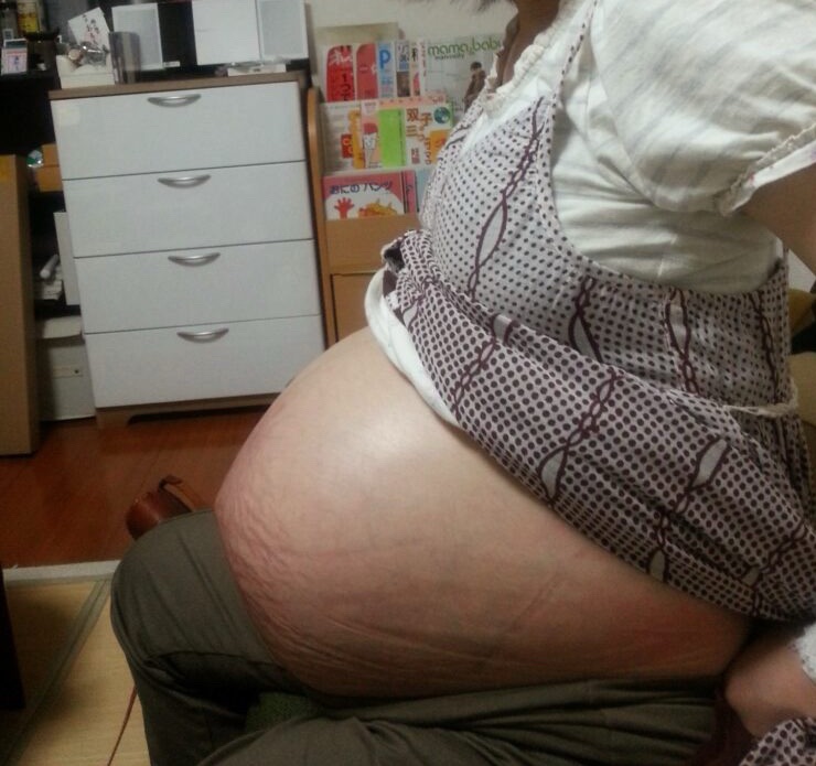 お腹が大きくなるにつれて、皮膚が伸びるから痒くて痒くて、妊娠線をどうにかするクリームも買ったけど、もうなんかそんなレベルじゃない笑。とにかく大きくて重くて、台所で前を向いて洗い物が出来ないんです。